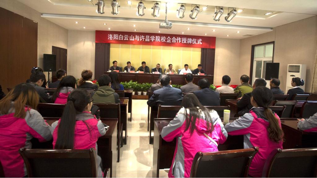 洛阳白云山管理局副局长张培敏、洛阳白云山文化旅游发展公司董事长李国芳、我校旅游学院院长许国林等出席签约仪式。洛阳白云山旅游发展公司员工代表、我校在白云山参加实习实训活动的学生等近百人参加了签约仪式。(朱国君)