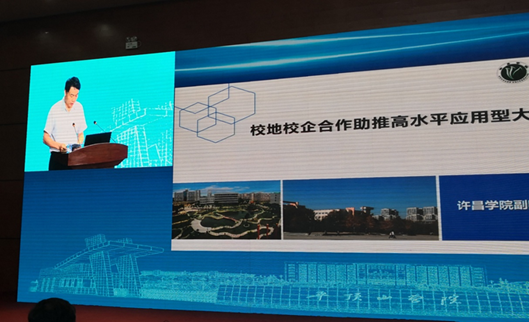 十所省级示范校负责人分别汇报了一年来示范校发展建设经验和取得的成效。郑直副校长代表我校做了工作汇报,他总结了我校一年来在构建政产学研长效合作机制、培育产教融合学科专业集群、深化应用型人才培养模式改革、进一步推进校地人才共建工程、打造校企协同创新服务平台、加强学生创新创业教育、促进区域特色文化传承创新、加快形成国际化办学格局等八个方面的示范校建设经验,并指出,我们所取得成绩和经验在不断丰富和发展“许昌模式”的内涵,我们有信心有决心在省委省政府、省教育厅的正确领导下,在兄弟院校的大力支持下,继续推进许昌学院的高质量发展,坚实地向高水平应用技术大学的建设目标迈进,争取为中原更加出彩做出更大的贡献。
