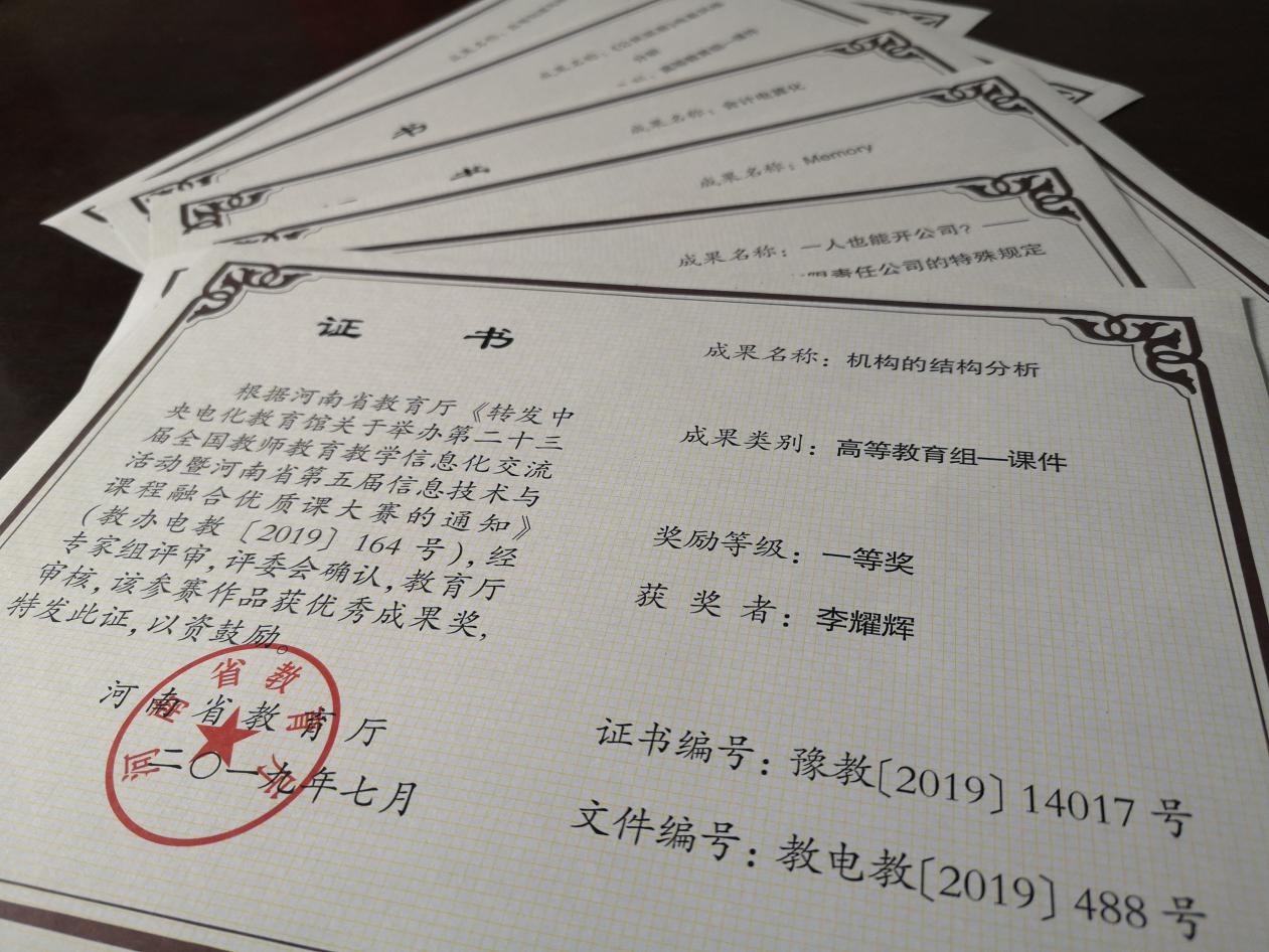 近日,河南省教育厅下发《关于公布第二十三届全国教师教育教学信息化交流活动暨河南省第五届信息技术与课程融合优质课大赛评选结果的通知》(教电教〔2019〕488号),我校6项作品在大赛中获奖,其中一等奖1项、二等奖3项、三等奖2项。