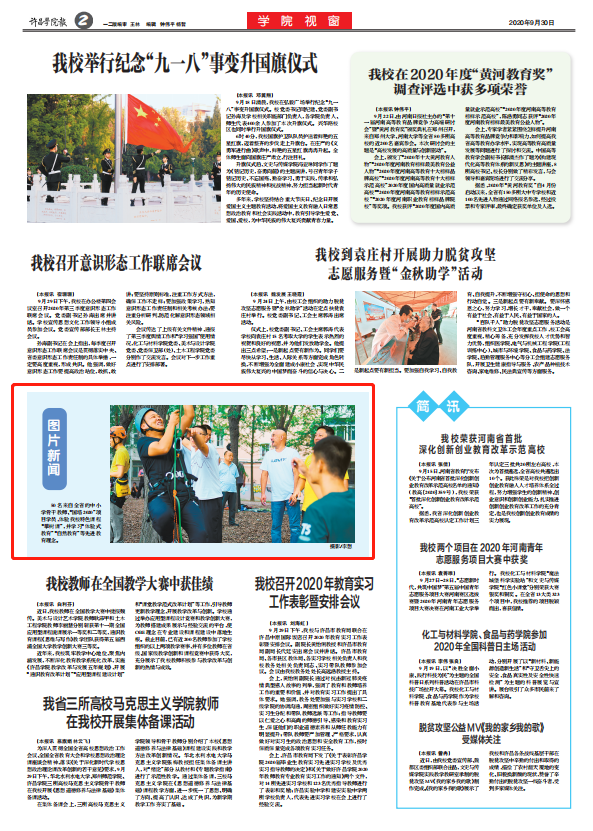 近日,河南省高校校报研究会、河南省新闻工作者协会高校报委员会公布“2020年度河南省高校好新闻奖及新闻论文奖”主题活动评选结果,我校共有15项选送作品获奖,其中一等奖7项,二等奖6项,三等奖2项。