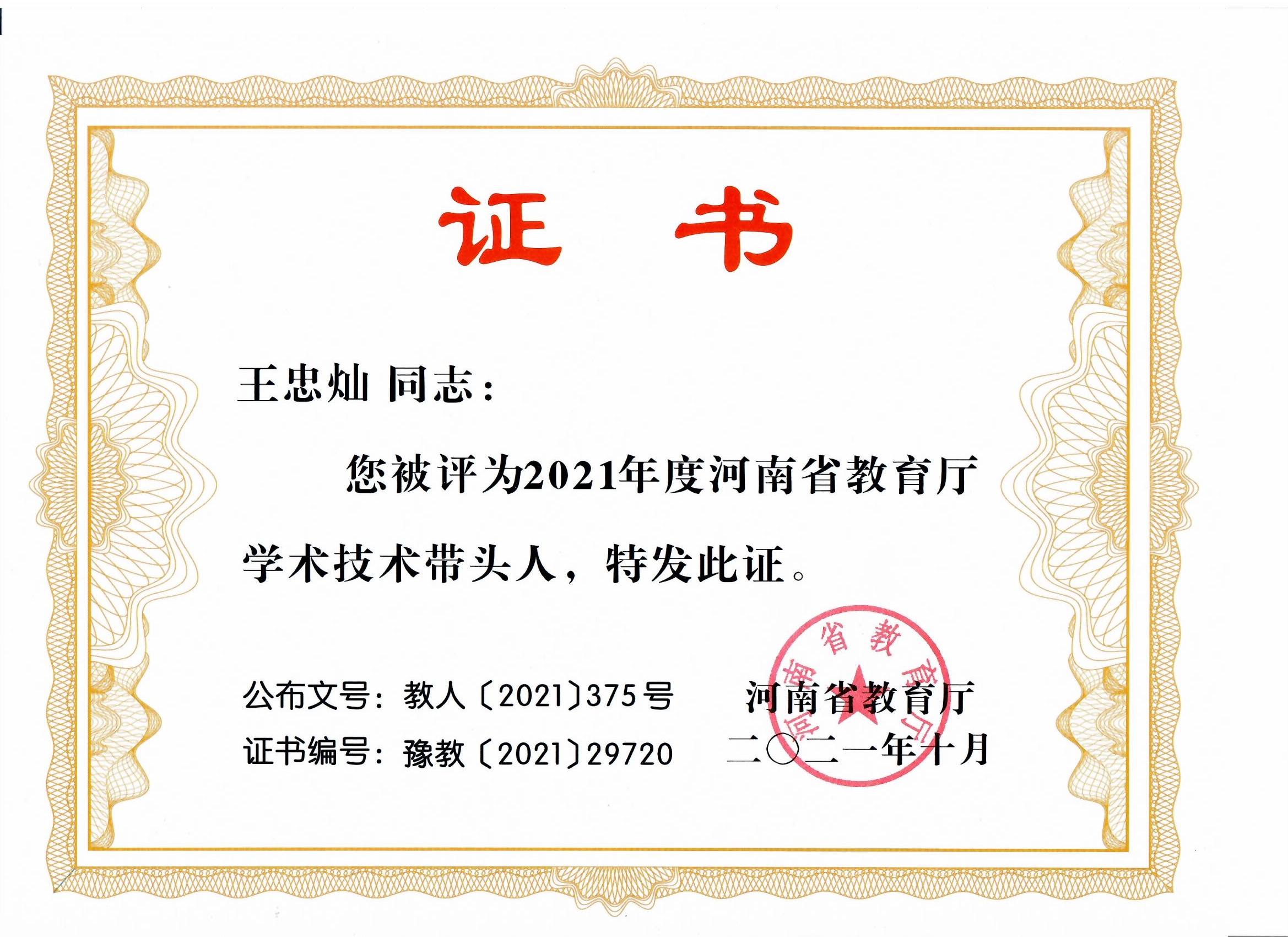近日,河南省教育厅发布了《关于公布2021年河南省教育厅学术技术带头人入选名单的通知》(教人〔2021〕375号)文件,我校铁伟伟、王忠灿两名教师入选。