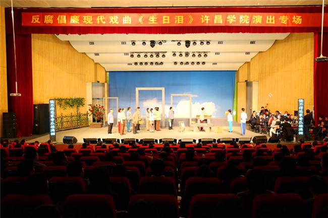 “不是自己的饭碗不要端,不是自己的衣裳别往身上穿!”“官再大不能对百姓冷脸,为百姓做实事才是好官!”12月18日,大型原创反腐倡廉现代戏、第八届黄河戏剧节金奖剧目——《生日泪》在许昌学院音乐厅进行了专场演出,全校科级以上干部、师生代表共同观看了演出。
