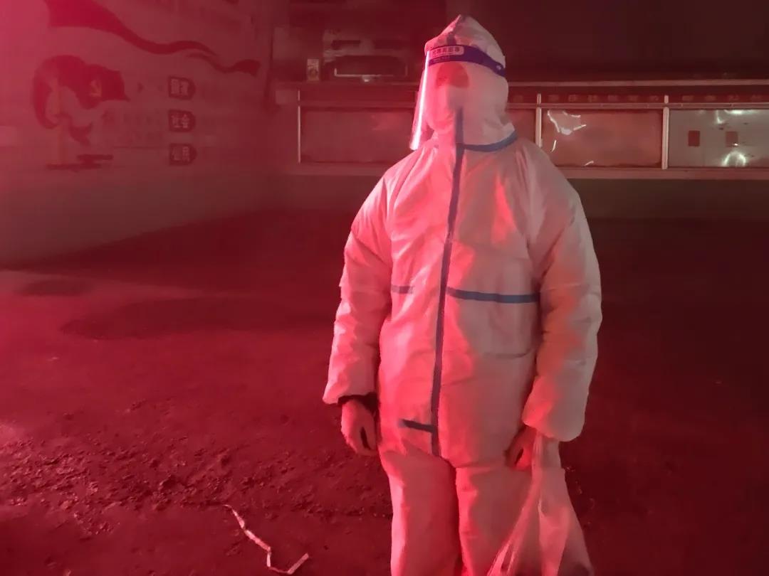 张涵博身着防护服参与防疫工作