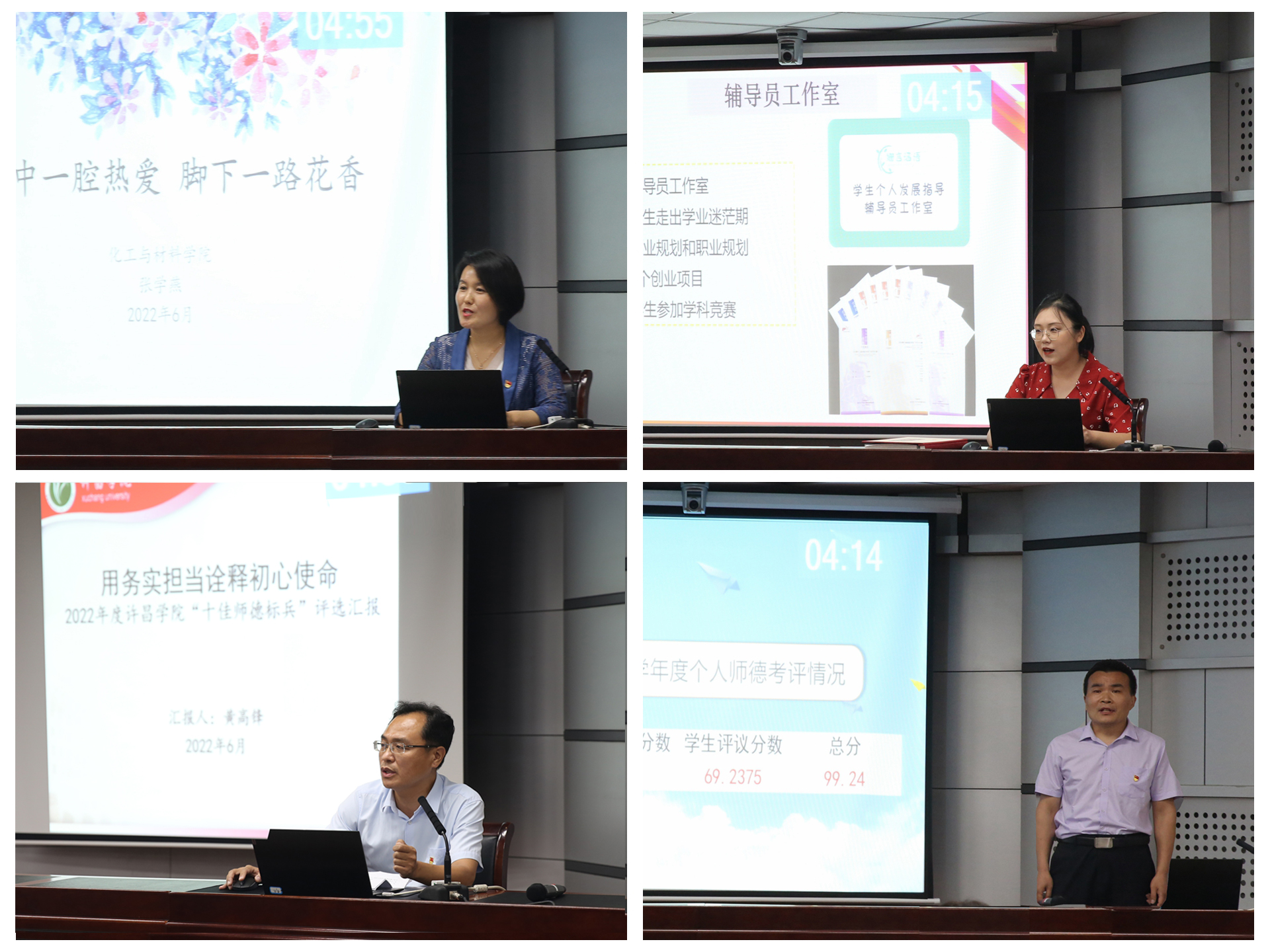 6月16日,许昌学院在办公楼第三会议室举行2022年度“十佳师德标兵”评选汇报会。来自全校各单位的23位“十佳师德标兵”候选人进行了现场汇报。