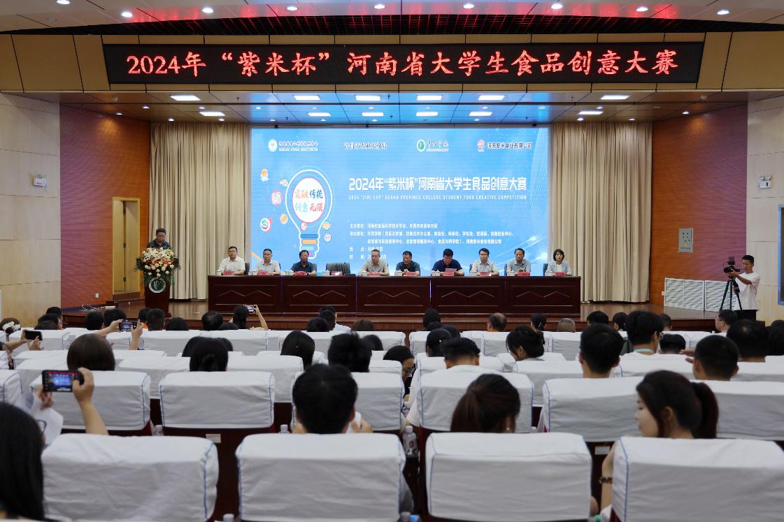 6月16日,由许昌学院和河南省食品科学技术学会、许昌市农业农村局、河南紫米食业有限公司共同举办的2024年“紫米杯”河南省大学生食品创意大赛成功举办。许昌学院副校长杜根远、河南省食品科学技术学会理事长沈祥坤、许昌市农业农村局局长张水根、河南紫米食业有限公司董事长王志磊出席活动。来自全省16所高校的66支队伍参加比赛。