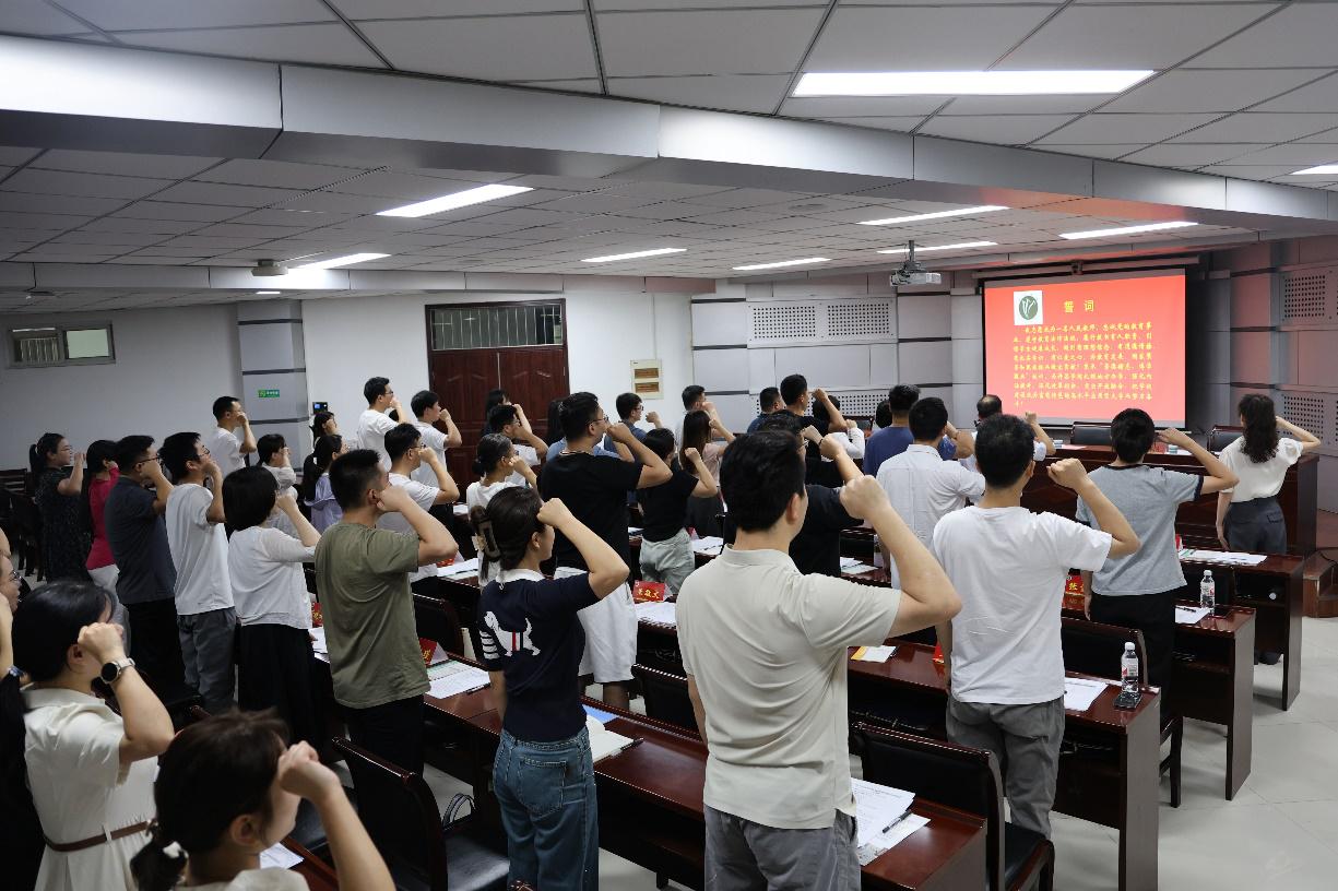 文史与传媒学院严婵娟博士代表新入职教师发言。全体参会人员进行了集体宣誓。