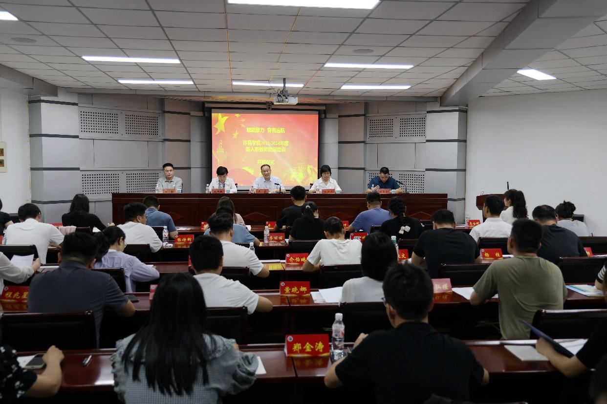8月24日上午,许昌学院2023-2024年度新入职教师岗前培训班开班。副校长王俊出席开班仪式并讲话。人事处、教务处、科研处、教师中心等部门负责人及49位新入职教师参加仪式。开班仪式由教师中心主任刘其涛主持。