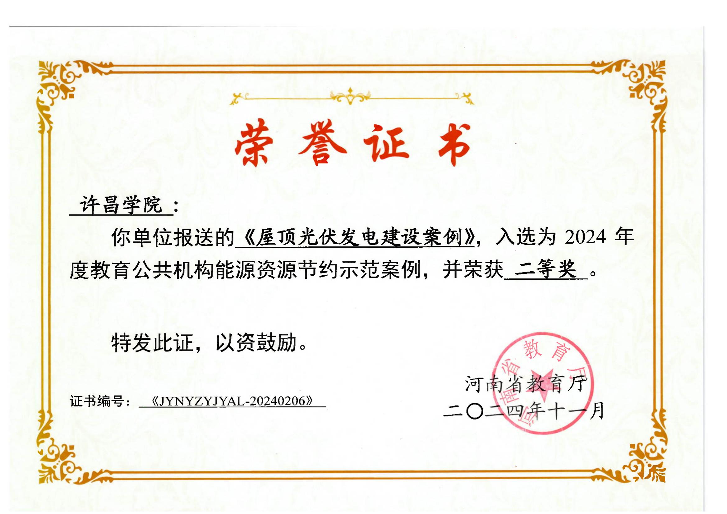 近日,河南省教育厅发布2024年度教育公共机构能源资源节约典型案例,我校报送的《屋顶光伏发电建设案例》荣获省级示范案例二等奖。河南省电视台在《河南晚间报道》节目中对学校节水管理先进做法和举措进行了报道,为全省公共机构节能减排工作树立了可借鉴、可推广的典范。