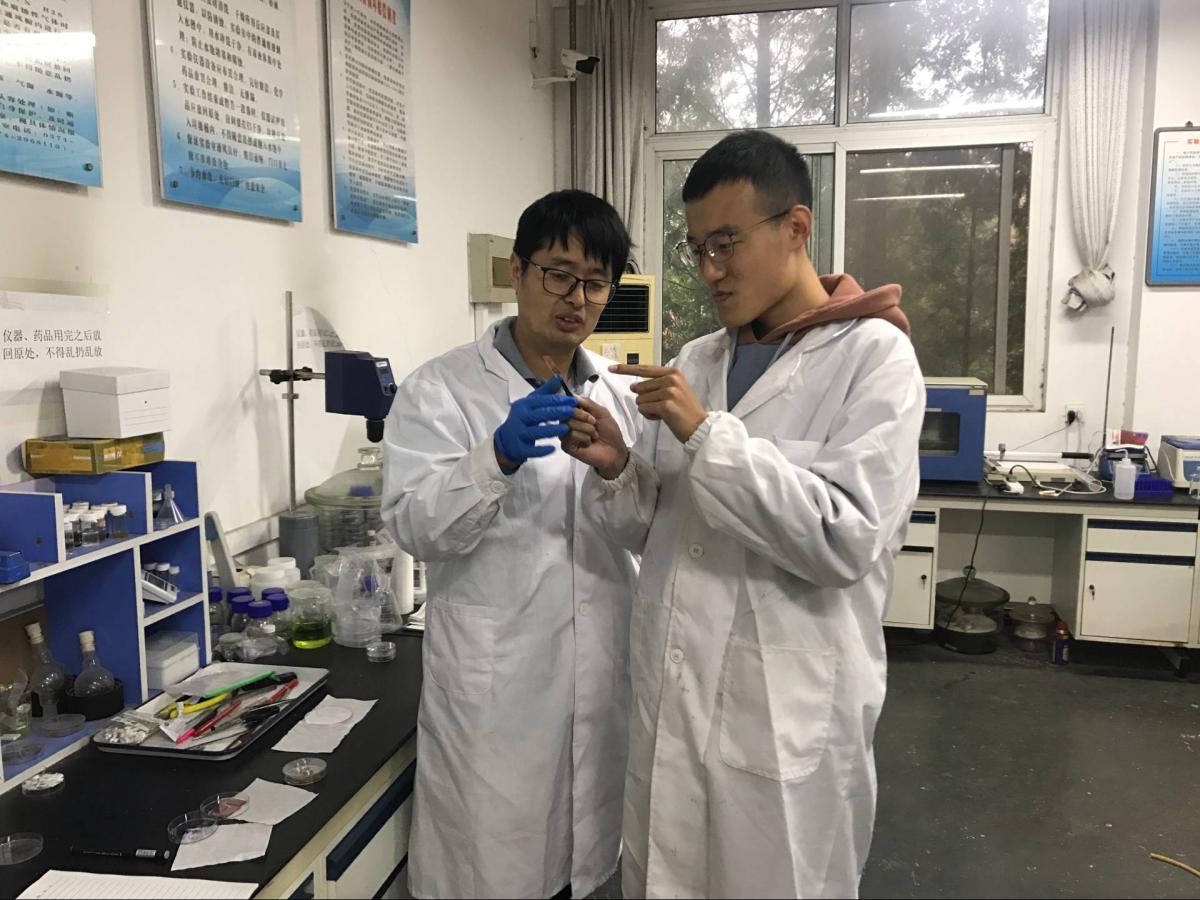 杨晓刚老师(左)和王家稷同学(右)正在做实验