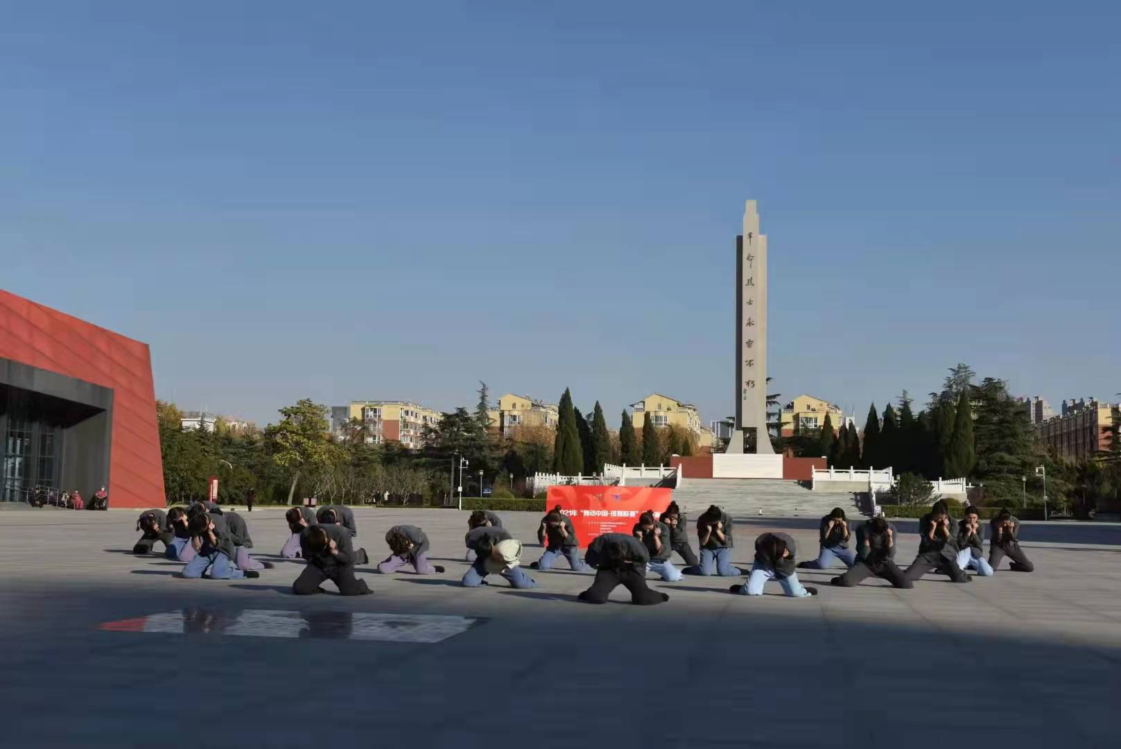 我校本次参赛舞蹈《铭记》以抗日战争为主题,展现了中国人民坚强不屈的意志和为夺取抗战胜利而誓死战斗的决心。在为期两个多月的备赛阶段,参赛队员在邹婷、李丹等带队老师的指导下,利用课后空余时间对动作进行精打细磨,以最饱满的精神状态投入到每一次训练中,确保总决赛中情感和动作的完美呈现。