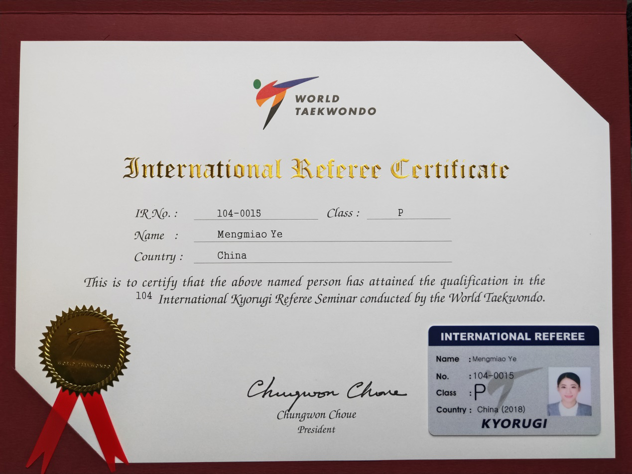 我校体育学院教师获得跆拳道国际级裁判资格
