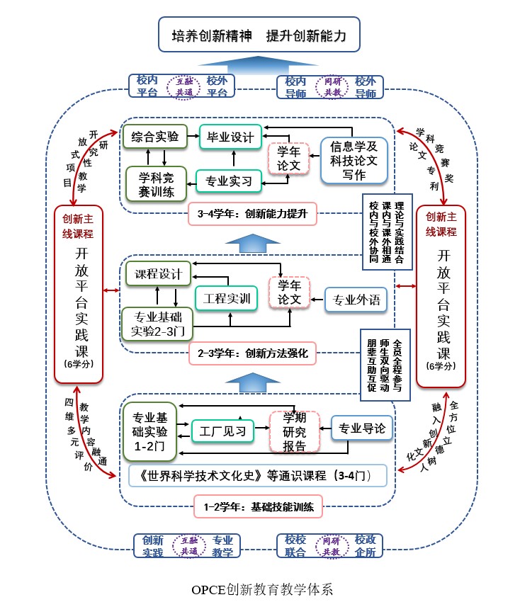 近年来,我校基于高素质应用型人才培养定位,紧密围绕地方主导产业发展需求,不断创新人才培养模式,科研与教学并举,创新与实践相长,将“开放”与“实践”融入教育和创新的全过程,优化教学内容,更新教学方法,走出了一条内涵提升、创新引领、产教融合、服务地方的应用型大学建设特色之路。12年来,我校针对地方本科院校创新人才培养缺乏校政企协同运行有效机制、本科生创新课程与专业教学缺乏深度融合、教学实践环节与产业创新需求和教师科技创新活动脱钩等痛点问题,以培养创新思维能力和复杂问题解决能力为突破口,搭建政校企所多元协同创新长效机制,打破传统课堂教学的时空壁垒,开设贯通本科四年学程的开放平台实践课,打造创新课程群,实施本科生全员导师制和项目式、研究性教学,开展三层次创新训练计划,形成了理论与实践、课内与课外、校内与校外相融通的“产学研教科创一体化”创新教育教学体系。