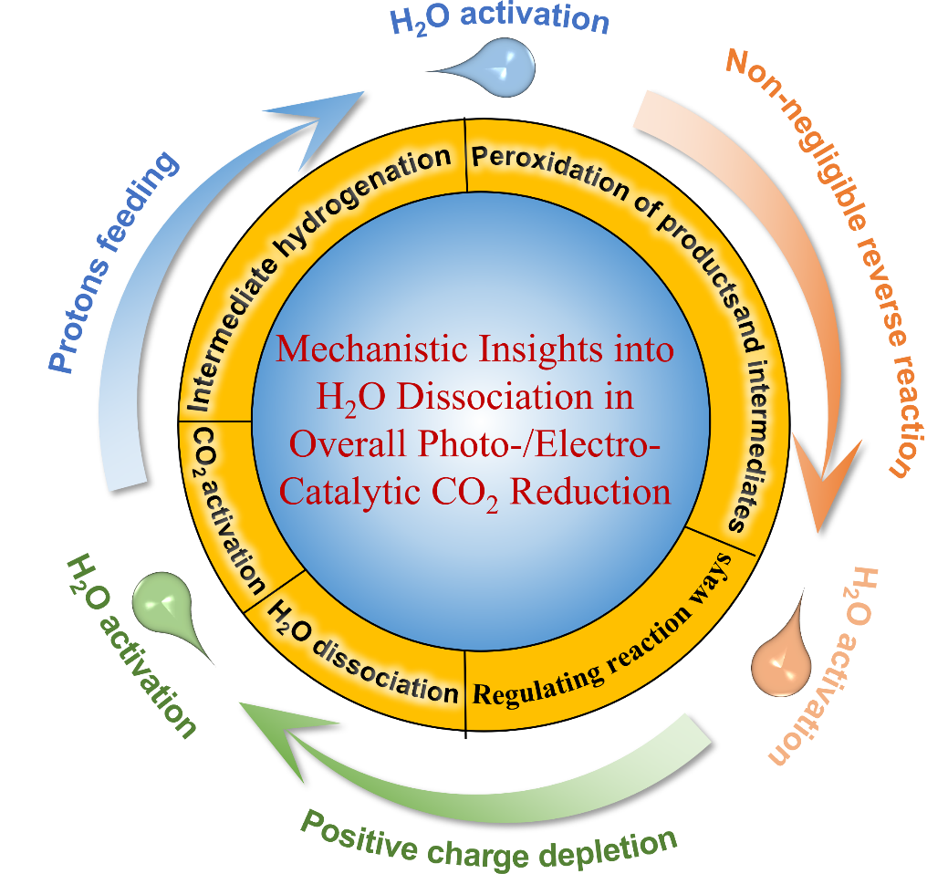 光/电催化H2O还原CO2制燃料和化学品为解决环境和能源挑战提供了一个完美的方案。长期以来,该反应体系中催化剂设计主要集中在调控还原位点,以提高CO2还原半反应的效率或调控CO2还原路径。但是,很少有研究关注H2O活化位点对H2O解离半反应的影响。值得注意的是,H2O解离半反应是CO2还原速率的决速步,且其还通过质子耦合电子转移过程控制含碳中间体的演化方向和生成能垒。因此,本综述将H2O解离半反应对CO2还原性能的调控机制总结为如下三个方面:(1)质子供给效应;(2) 正电荷耗尽效应;(3) 不可忽略的逆反应效应。上述分析旨在揭示H2O活化对CO2还原路径和转化效率的潜在作用机制,并拟建立机制-结构-性能三者间的映射关系,以指导高效催化材料的设计和开发。此外,本综述还总结了研究H2O解离机理的相关先进表征技术。最后,讨论了光/电催化CO2还原中H2O活化位点的设计面临的挑战,并展望未来光/电催化CO2还原催化剂的设计概念。光/电催化H2O还原CO2技术是实现我国“双碳”战略目标的重要方式。