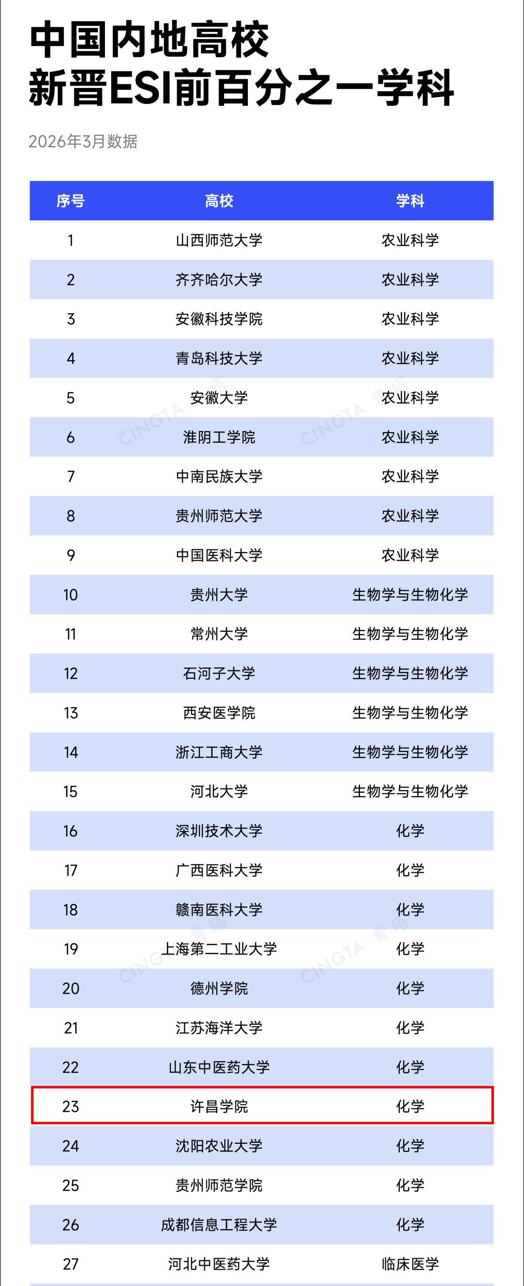 突破!我校化学学科首次进入ESI全球前1%