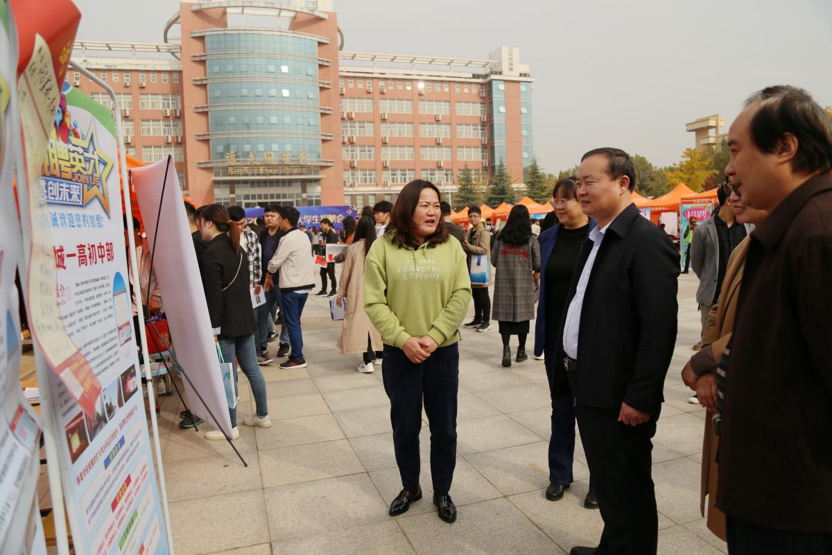 副院长郭涛、许昌市人力资源和社会保障局副局长吴强等前往招聘会现场,详细了解招聘会情况。郭涛副院长与用人单位沟通交流,征询用人单位对学校专业建设、课程设置、人才培养等方面的建议和意见,要求相关单位要进一步了解用人单位需求,做好我校毕业生的推介工作,引导学生实现高质量就业。