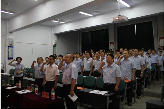 上午8:00,开班仪式在庄严肃穆的国歌声中正式开始。随后,全体党员干部面对中国共产党党旗,郑重举起右拳,重温入党誓词。
