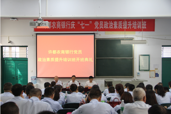 7月2日至7日,许都农商银行庆“七一”党员政治素质提升培训班在我校顺利举行,来自许都农商银行的党员干部170余人参加了此次培训。在7月2日上午举行的开班仪式上,我校党委副书记孙海,许都农商银行党委书记郑先虔、行长罗铁锤出席。
