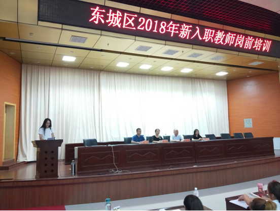 贾会芳主任要求新聘教师珍惜机会、端正态度,勤学善思、融会贯通,并及时消化吸收、学以致用。要求各位老师要不忘初心,要有良好的师德,真正成为人类灵魂的工程师。来自东城区实验学校中学部的张丹丹老师代表学员做了表态发言。