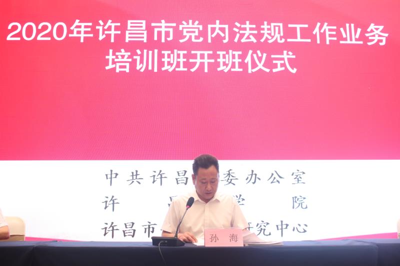 党委副书记孙海代表我校在开班仪式上作了题为《加强党内法规研究中心建设,积极开展党规研究,推动党内法规事业高质量发展》的讲话。他指出,许昌市党内法规研究中心已经发展成为许昌市党内法规研究和实践创新基地、党内法规教育培训与人才培养基地。希望中心在今后的工作中牢牢把握正确的政治方向,坚持理论联系实际的研究原则和与时俱进的研究方法,加强学术交流和人才队伍建设,强化决策服务功能,深入开展智库研究。