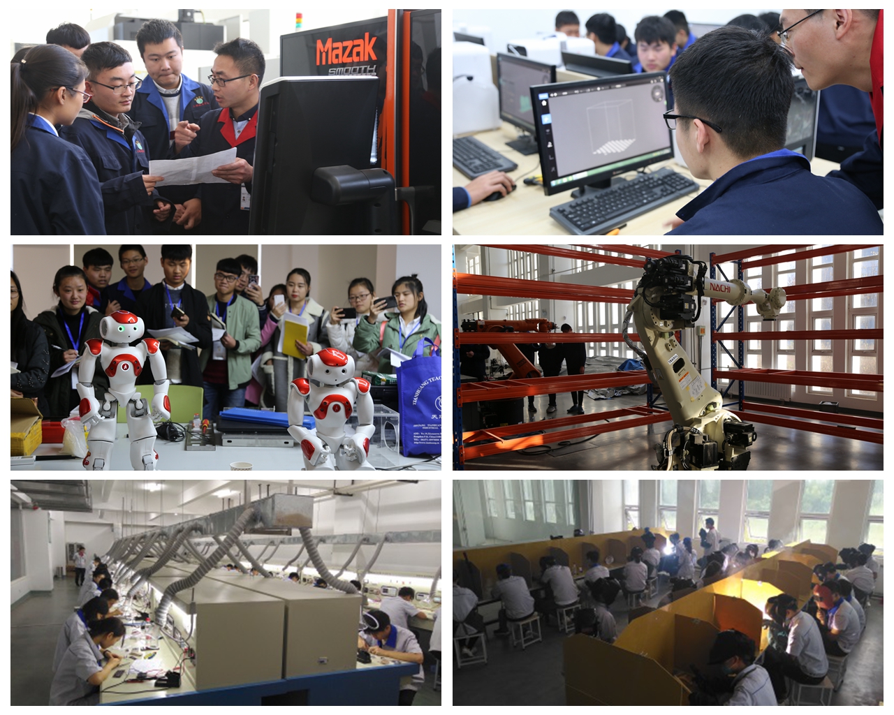 工程技术中心目前已建成“十室两中心一基地”。设置实训实验室10个,包括钳工实训室、电子装配实训室、数控加工实训室、电气焊接实训室、3D打印实验室、智能制造实验室、家庭用电实验室、工业控制实验室、计算机仿真实验室、工程实践与创新实验室等,还建有工业机器人协同创新中心和汽车零部件数字化设计制造工程技术研究中心两个中心,和一个先进制造创新人才培育基地。