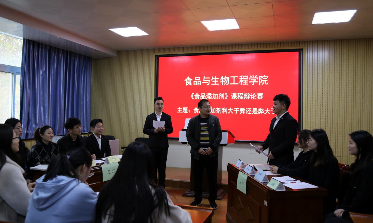 这是我校“课程思政”教育教学改革研究立项之一——《食品添加剂》课堂上的一幕,任课老师李光辉把学生分为正方和反方,围绕“食品添加剂的利与弊”展开辩论。李老师说:“同学们在辩论的过程中,明白了食品添加剂要依法添加、依标准添加,行业诚信意识在学生们心里渐渐明晰。”